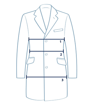 1. Chest: Overcoat measured flat across the front at the chest (armpit to armpit)
