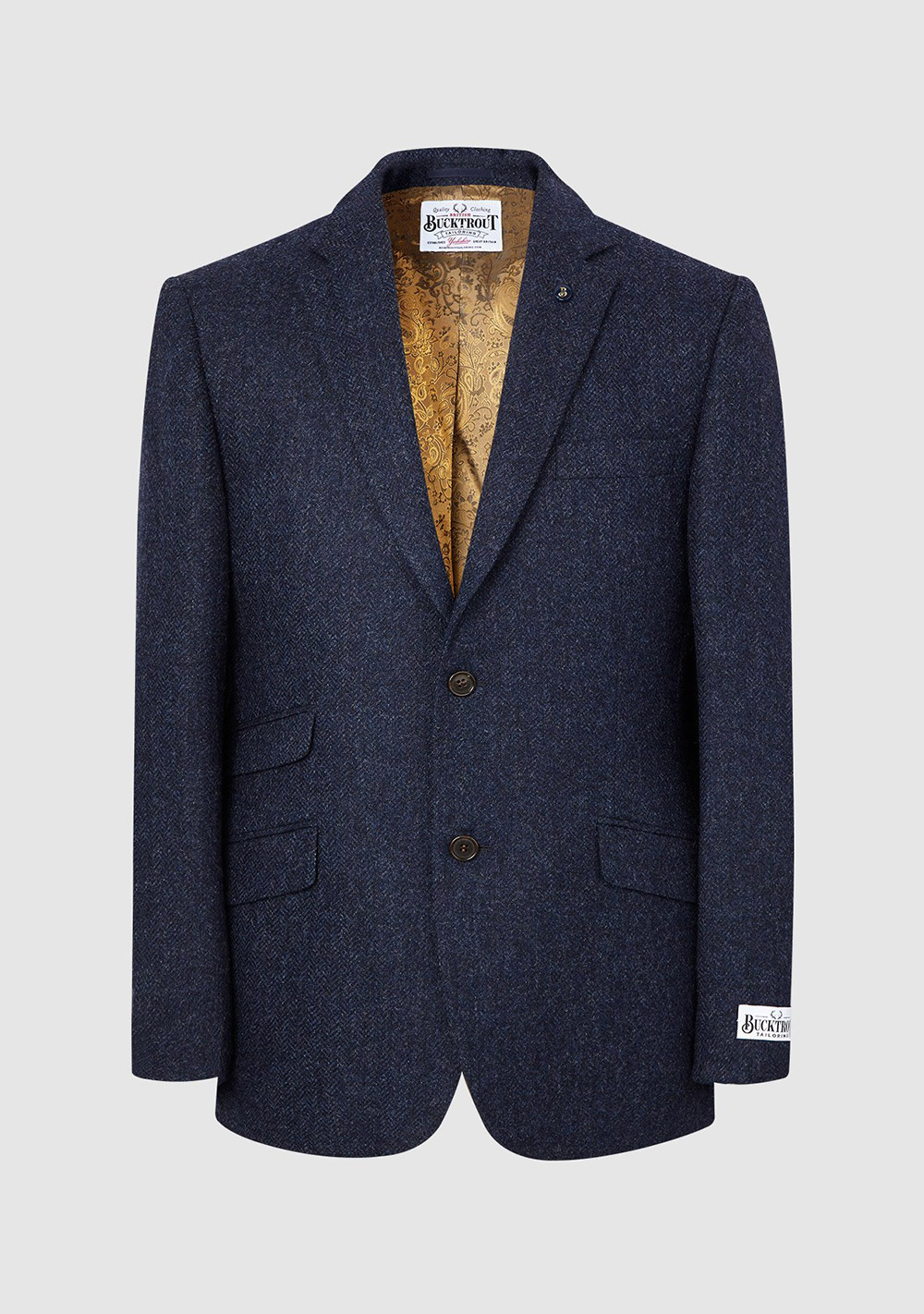 Do uszycia marynarki Bucktrout Patrick Blue użyto tweedu z angielskiej fabryki Moon, która słynie z dbałości wykonanych materiałów, a także doskonałego wyważenia ceny i jakości. Tweed Moon ze 100% wełny świetnie sprawdza się w chłodniejsze dni, a do tego jest trwały. Podszewka wykonana w 50% z acetatu i w 50% z wiskozy również cechuje się imponującą wytrzymałością. Warto również podkreślić, iż do jej zalet można z pewnością zaliczyć jej jasny, efektywny wygląd.