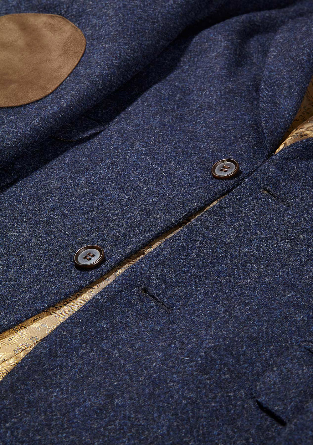 Marynarka Bucktrout Patrick Blue wyprodukowana przez Bucktrout Tailoring została uszyta ze stonowanego niebieskiego tweedu z kontrastowymi łatami na łokciach. Jej krój jest raczej wąski, ale nie karykaturalny, tj. bez skrajności. Patrick Blue sprawdzi się podczas spacerów, wycieczek za miasto, imprez plenerowych czy nieformalnych spotkań. Niebieską marynarkę Patrick Blue można także założyć do biura, w zależności od dress codu obowiązującego w danej organizacji.