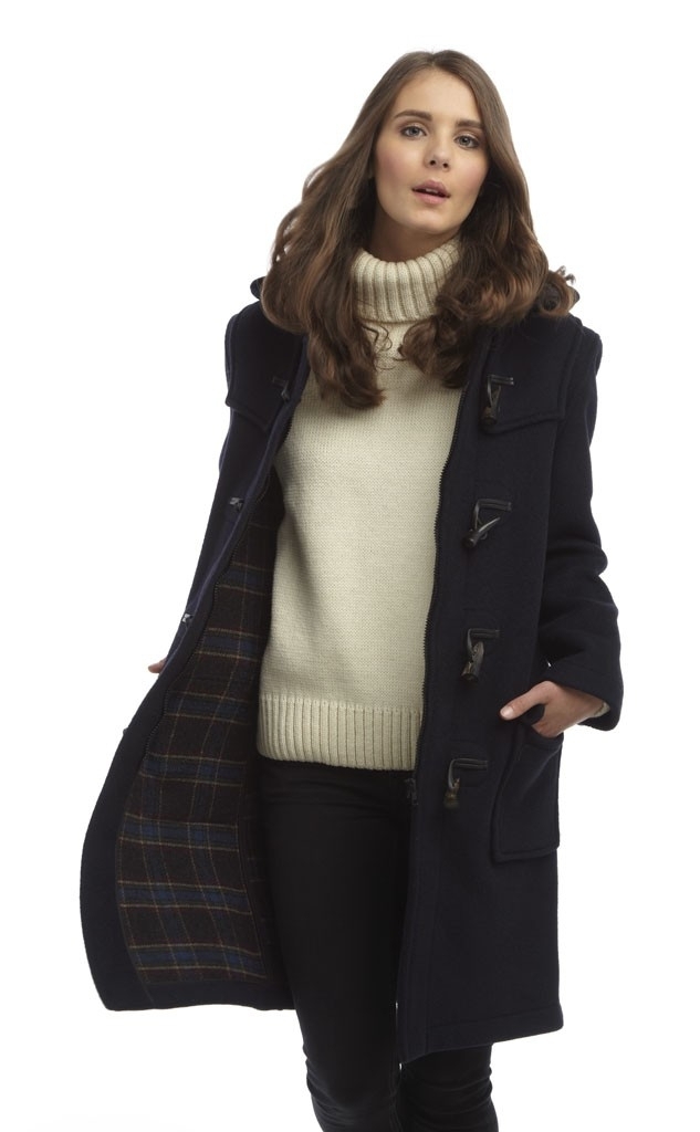 Klasyczny damski duffle coat Classic Duffle Navy jest bardzo ciepły i trwały. Jest uszyty z dwóch warstw materiału, dwie warstwy są ze sobą zszywane. Materiał tej budrysówki wykonywany jest w Toskanii we Włoszech, sama zaś kurtka szyta w Anglii. Model Classic Duffle Navy jest bardzo ciepły, ponieważ materiał składa się z 70% wełny, a tylko 30% stanowią włókna mieszane. Taki skład nadaje materiałowi niesamowitą miękkość i głęboki intensywny kolor oraz chroni przed mechaceniem.
