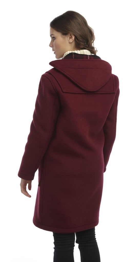 Klasyczny damski duffle coat Classic Duffle Burgundy jest bardzo ciepły i trwały. Jest uszyty z dwóch warstw materiału, dwie warstwy są ze sobą zszywane. Materiał tej budrysówki wykonywany jest w Toskanii we Włoszech, sama zaś kurtka szyta w Anglii. Model Classic Duffle Burgundy jest bardzo ciepły, ponieważ materiał składa się z 70% wełny, a tylko 30% stanowią włókna mieszane. Taki skład nadaje materiałowi niesamowitą miękkość i głęboki intensywny kolor oraz chroni przed mechaceniem.